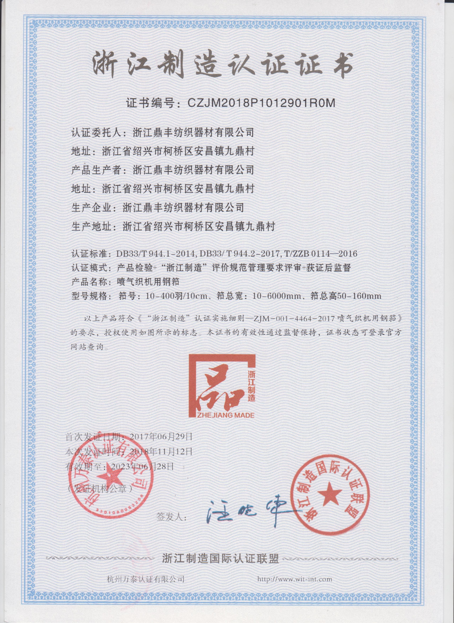 公司現(xiàn)有固定資產(chǎn)6000余萬元,員工300余人,現(xiàn)具有年產(chǎn)噴氣異型筘12萬米,劍桿筘32萬米,噴水筘5萬米,綜框20萬片,鋼片綜2億片,停經(jīng)片1.5億片, 織軸1.2萬套的生產(chǎn)能力。公司“越泉”商標(biāo)被評為“中國馳名商標(biāo)”。公司通過ISO9001 :2015國際質(zhì)量體系認(rèn)證,ISO14001:2015國際環(huán)境管理體系認(rèn)證,ISO45001:2018國際職業(yè)健康安全管理體系認(rèn)證,噴氣織機用鋼筘和織機用鋁合金綜框獲得“浙江制造”品牌認(rèn)證,公司擁有自營進出口權(quán),產(chǎn)品暢銷全國并遠銷印度、巴基斯坦、土耳其、埃及、哥倫比亞、意大利等國家和地區(qū)。